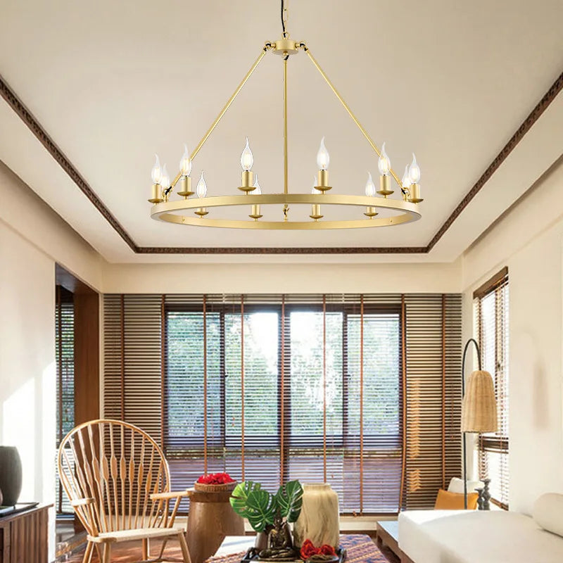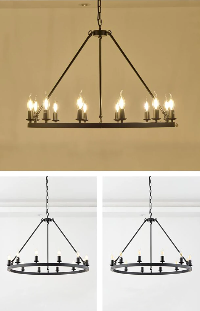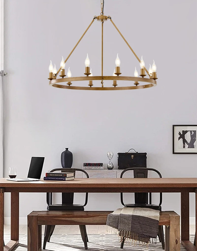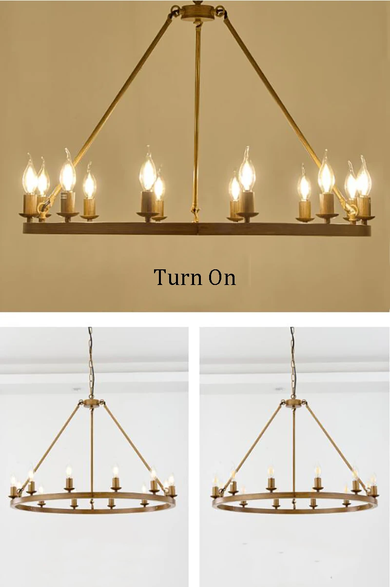 American Wagon Wheel Chandelier light Retro Industrial Candle Hanging lamp For Cafe Restaurant Bar Round Ceiling Lamp W 31.4"