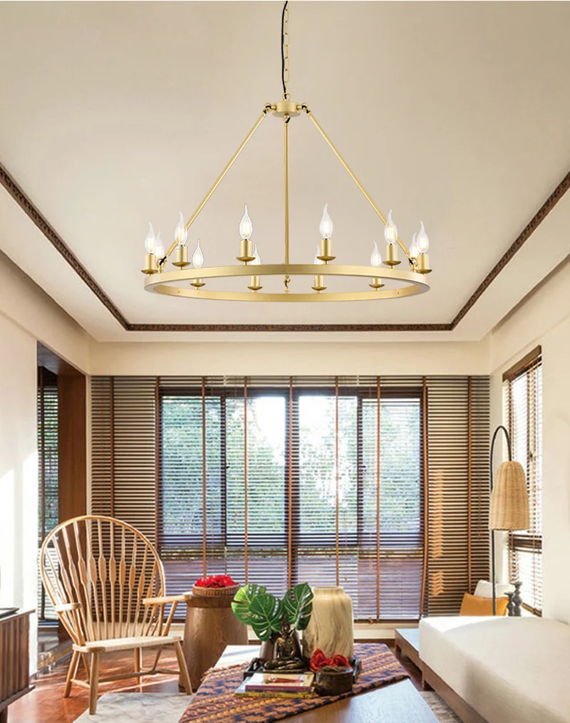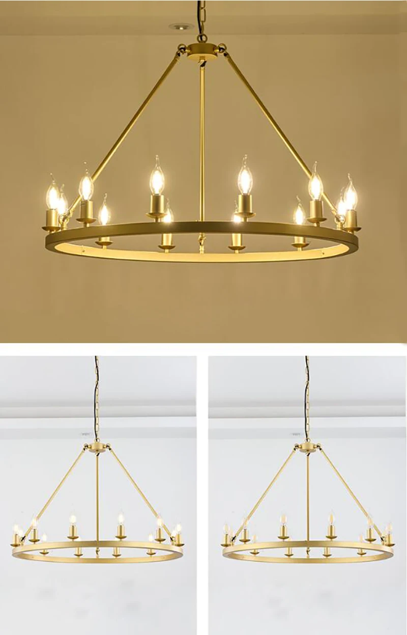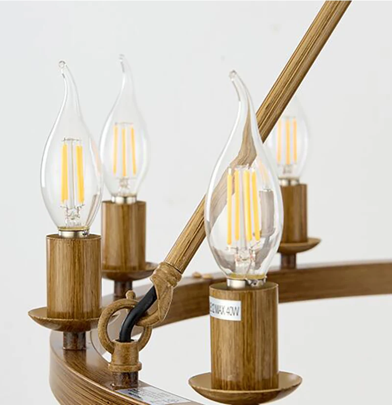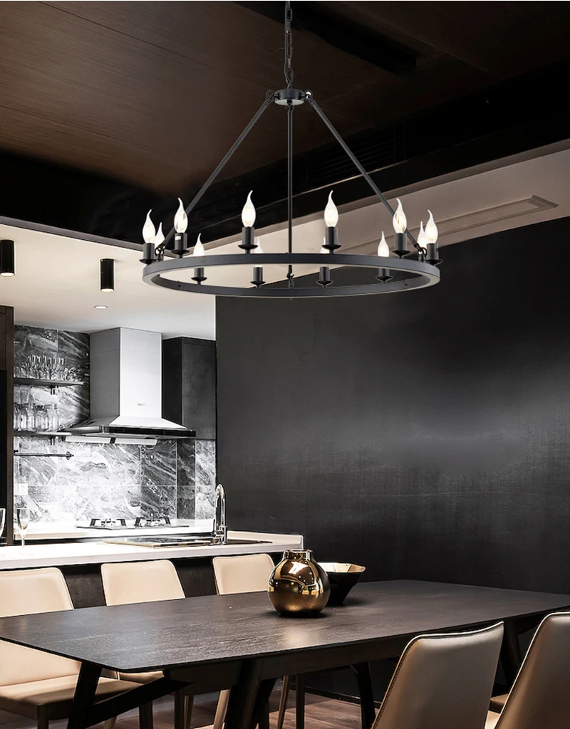 American Wagon Wheel Chandelier light Retro Industrial Candle Hanging lamp For Cafe Restaurant Bar Round Ceiling Lamp W 31.4"