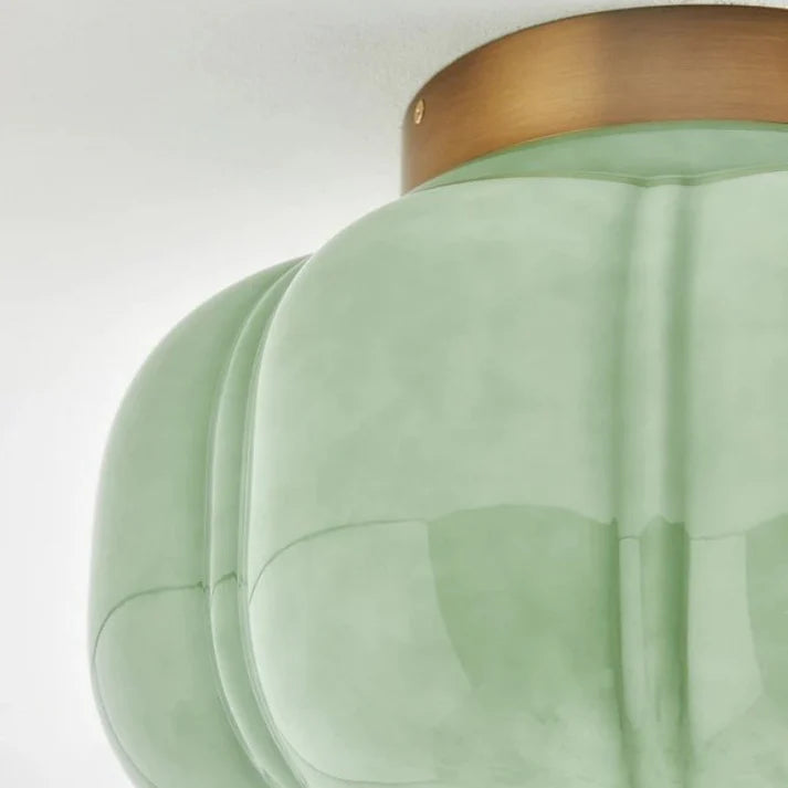 The Maravine Glass Ceiling Lamp embodies refined nostalgia through its sculptural silhouette and jade-green luster. Handcrafted glass flows in gentle curves, creating a soft interplay of light and texture that feels both vintage and serene. Framed by warm brass accents, this ceiling lamp brings a poetic balance of craftsmanship and elegance—perfect for interiors that seek timeless charm with a modern touch.