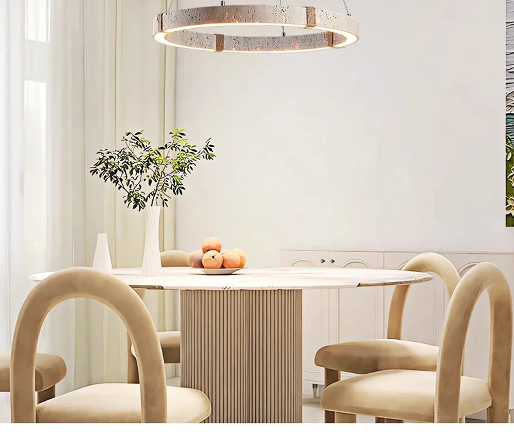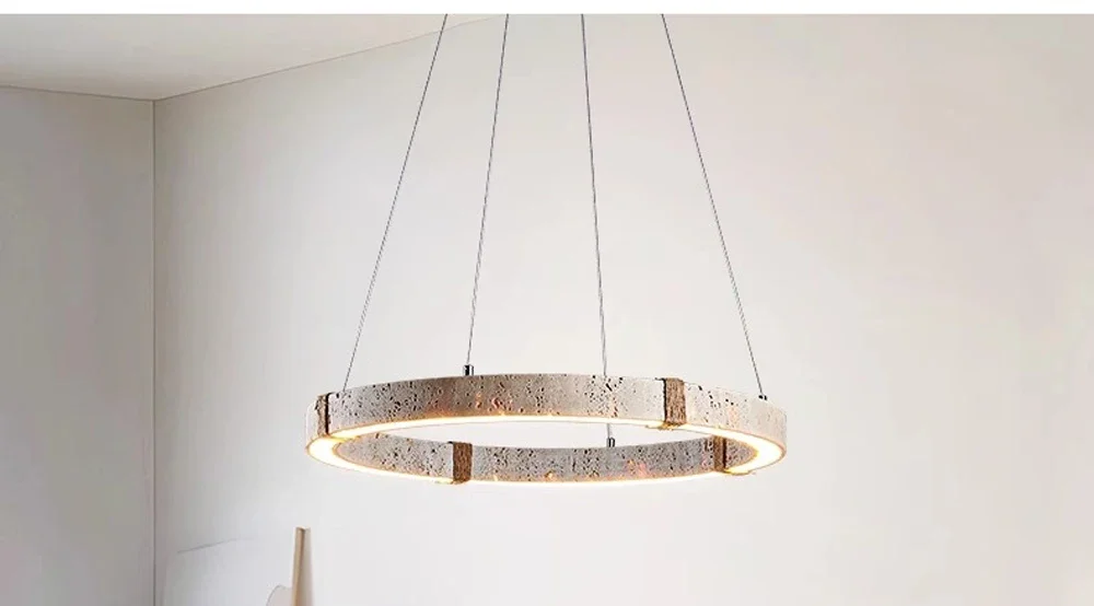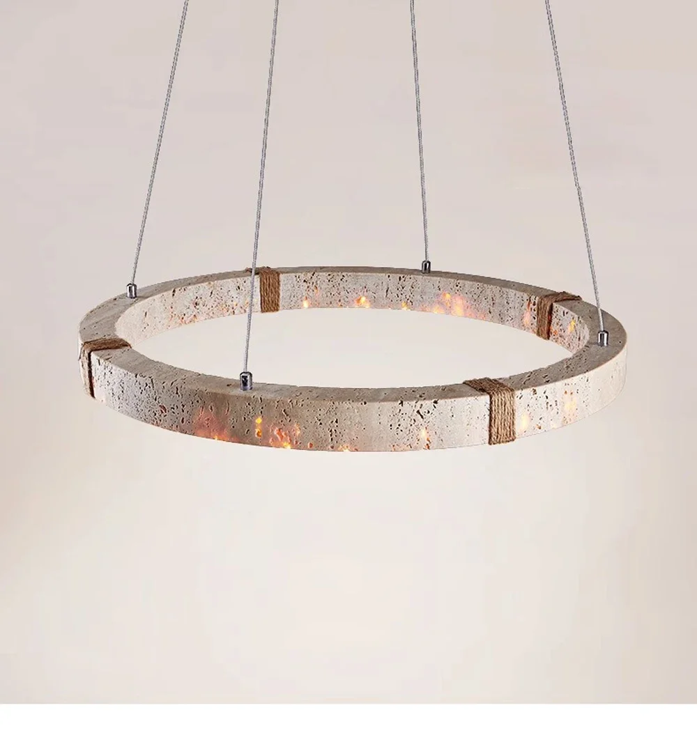 natural travertine Ring Pendant Light for kitchen island Living Dinning Room wabi-sabi Stone Chandelier Lighting Fixtures lamp