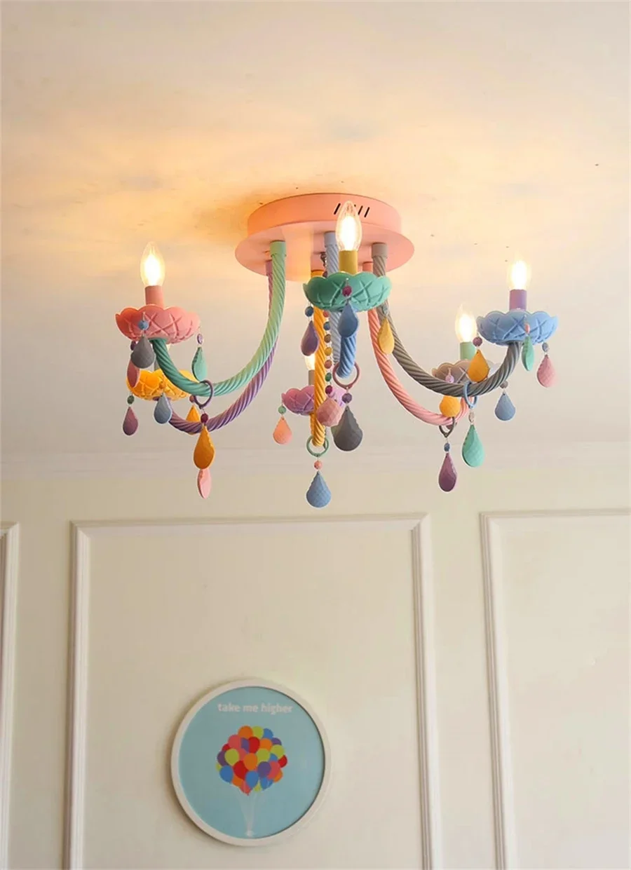Crystal Chandelier Children Room Macaron Color Candle Lamp Lustre Cristal Creative Fantasy Girl Princess Luminaire Light